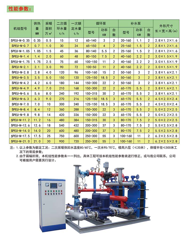 SPEU型板式換熱機組是我公司根據我國供熱行業發展趨勢,專門針對供暖區域來設計開發的有效型換熱機組,是集城市供熱技術、智能化控制技術與人性化結構設計于一體的智能型熱交換機組,具有強大的功能來完成所有建筑物的各種區域熱能需求。可廣泛適用于工廠、機關、學校、住宅小區、別墅等民用建筑;商場、賓館、飯店、度假村等商用建筑的采暖、空調、洗浴用水、生活用水、游泳池冬日用水。